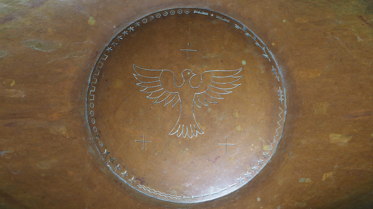 Der Heilige Geist im Taufbecken unserer Wohltorfer Kirche - wir nehmen ihn als Friedenstaube
